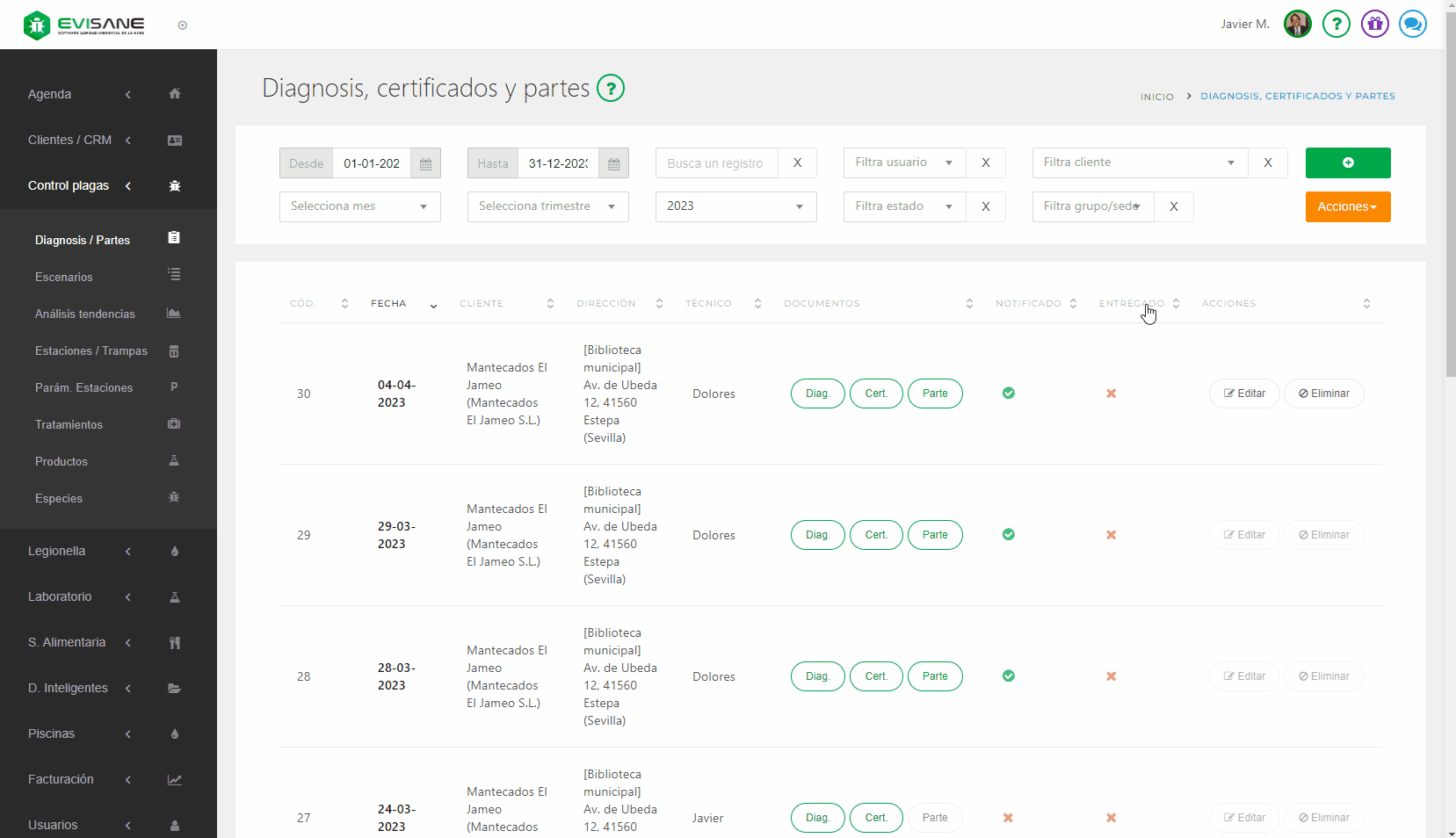 ¡Seguimos haciendo de EviSane un software cada vez más grande y útil para todo tipo de empresas! Desde los autónomos que trabajan por sí solos hasta grandes entramados de más de 60 usuarios, nuestro software se amolda a la perfección a sus usuarios y a su forma de afrontar sus jornadas laborales. ¿No te lo crees? Es hora de solicitar una demostración gratuita para ver con tus propios ojos todo lo que EviSane puede hacer por tu empresa. Solicítala desde aquí y descubre por qué casi un 20% de las empresas españolas de sanidad ambiental ya trabajan con él.