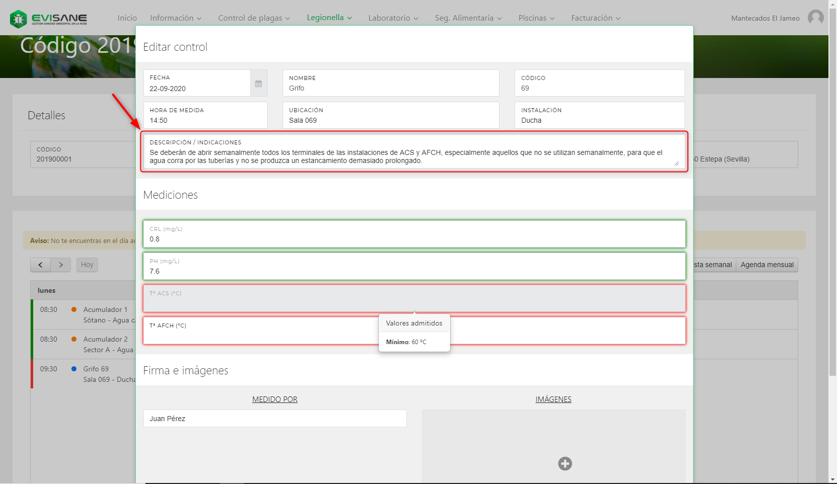 Sabemos que tienes clientes resolutivos, muy capaces y con gran conocimiento, y sabemos que tienes otros que no tanto. Precisamente pensando en estos últimos, hemos añadido un nuevo campo llamado «Descripción / Indicaciones» en los controles del libro de prevención y control de legionella y del plan de APPCC.