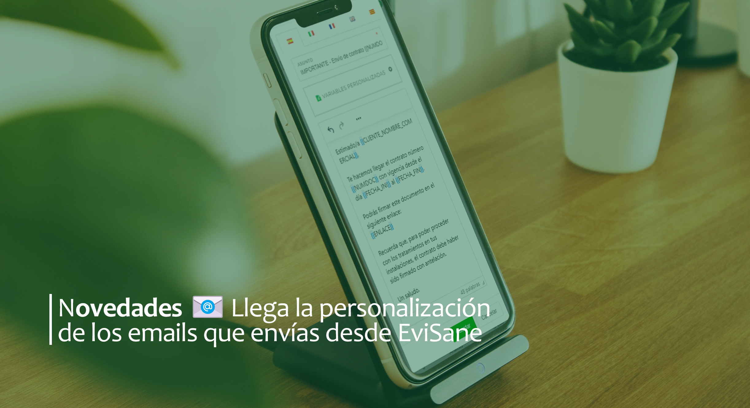 En EviSane sabemos perfectamente que cada segundo cuenta en una jornada cargadita de trabajo ⏱️ Es por ello que seguimos dándole vueltas a la cabeza, además de escuchando muy de cerca lo que nuestros clientes tienen que decir 🧏🏻♀️ para continuar con nuestro objetivo de mejorar nuestra plataforma. Y no pararemos para poder revalidar así nuestra posición como software más completo, flexible, intuitivo y versátil del mercado 🤝🏻 Hoy te presentamos algo que llevabas tiempo solicitando y que va a suponerte un inmenso ahorro de tiempo y esfuerzo: ¡Damos la bienvenida a la personalización de los emails 📧 que envías a tus clientes desde EviSane!
