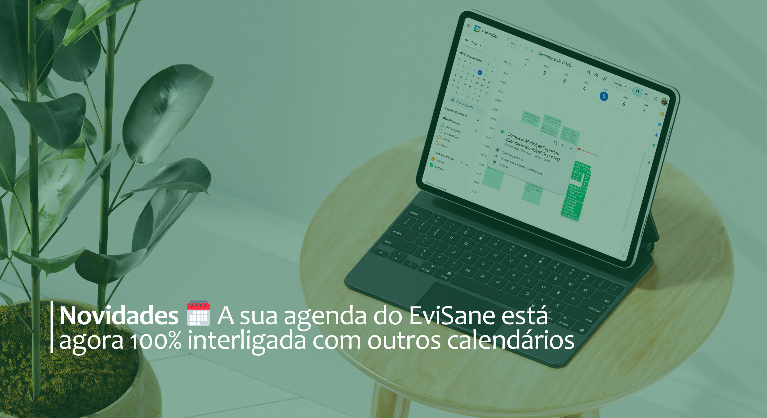 Simplificado, cómodo, sem fios. É verdade que talvez estejas mais habituado a consultar outros calendários. E é aí que, mais uma vez, entra em cena a nossa equipa de desenvolvimento 👨🏻💻 O que te pareceria se te disséssemos que agora, graças à ligação da nossa agenda com calendários que já usas todos os dias —como Google Calendar, Outlook ou Calendar (iOS)—, vais poder estar muito melhor informado 📱 sobre as tuas próximas visitas sem necessidade de aceder à EviSane?