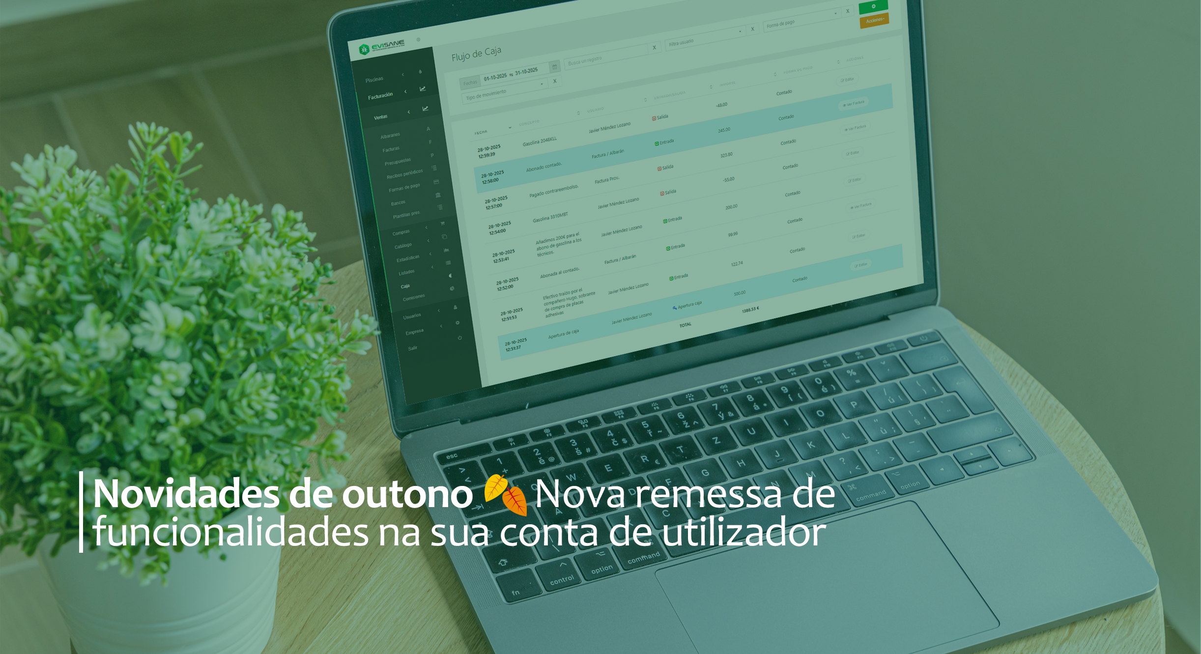 Se costumas movimentar dinheiro em numerário no teu escritório 💰 (os teus clientes pagam o serviço do dia em dinheiro, vendes produtos, pagas a gasolina ao teu técnico…), isto interessa-te: agora encontrarás um gestor completo de fluxos de caixa no teu módulo de faturação da EviSane.